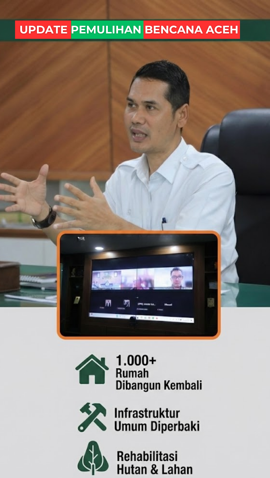 Hal tersebut disampaikan oleh Sekretaris Daerah (Sekda) Aceh, M. Nasir, dalam rapat virtual bersama Shelter Advisor dari Delegasi IFRC Indonesia, Wahyu Widianto, di ruang kerjanya, Banda Aceh, Rabu (31/12/2025). Pertemuan tersebut juga dihadiri perwakilan dari Dompet Dhuafa, Rumah Zakat, Women in Local Humanitarian Leadership (WLHL), IHCP dan Human Initiative.
