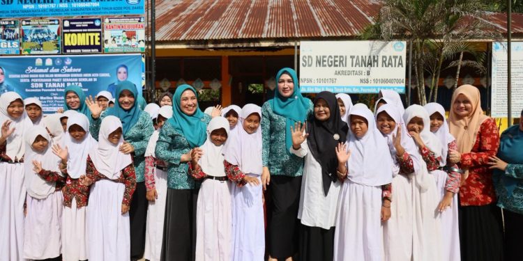 ACEH TIMUR – Bunda Guru Aceh Marlina Muzakir, didampingi Ketua Dharma Wanita Persatuan Aceh Malahayati, berkunjung SD Negeri Tanah Rata, Gampong Tanah Rata Kecamatan Peureulak, Rabu (15/4/2026).