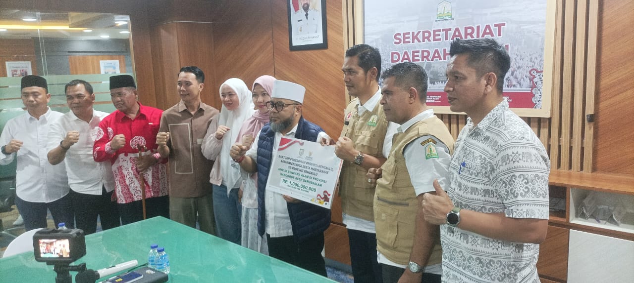 kutarajapost.com BANDA ACEH – Masyarakat Provinsi Bengkulu berhasil mendonasikan Rp 1 Miliar untuk membantu korban bencana hidrometeorologi, khususnya banjir dan tanah longsor, yang melanda sejumlah wilayah di Aceh.