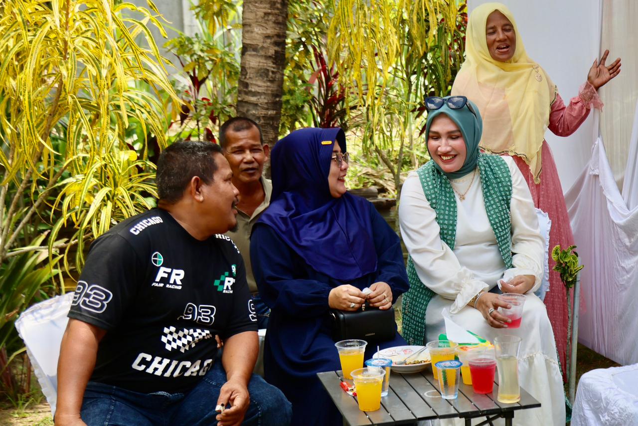 Suasana Halal bi Halal dan Silaturrahmi Idul Fitri berlangsung meriah, ribuan masyarakat mengantri untuk menyalami Kak Na yang duduk berdampingan dengan Zubaidah sang Ibu Mertuanya.