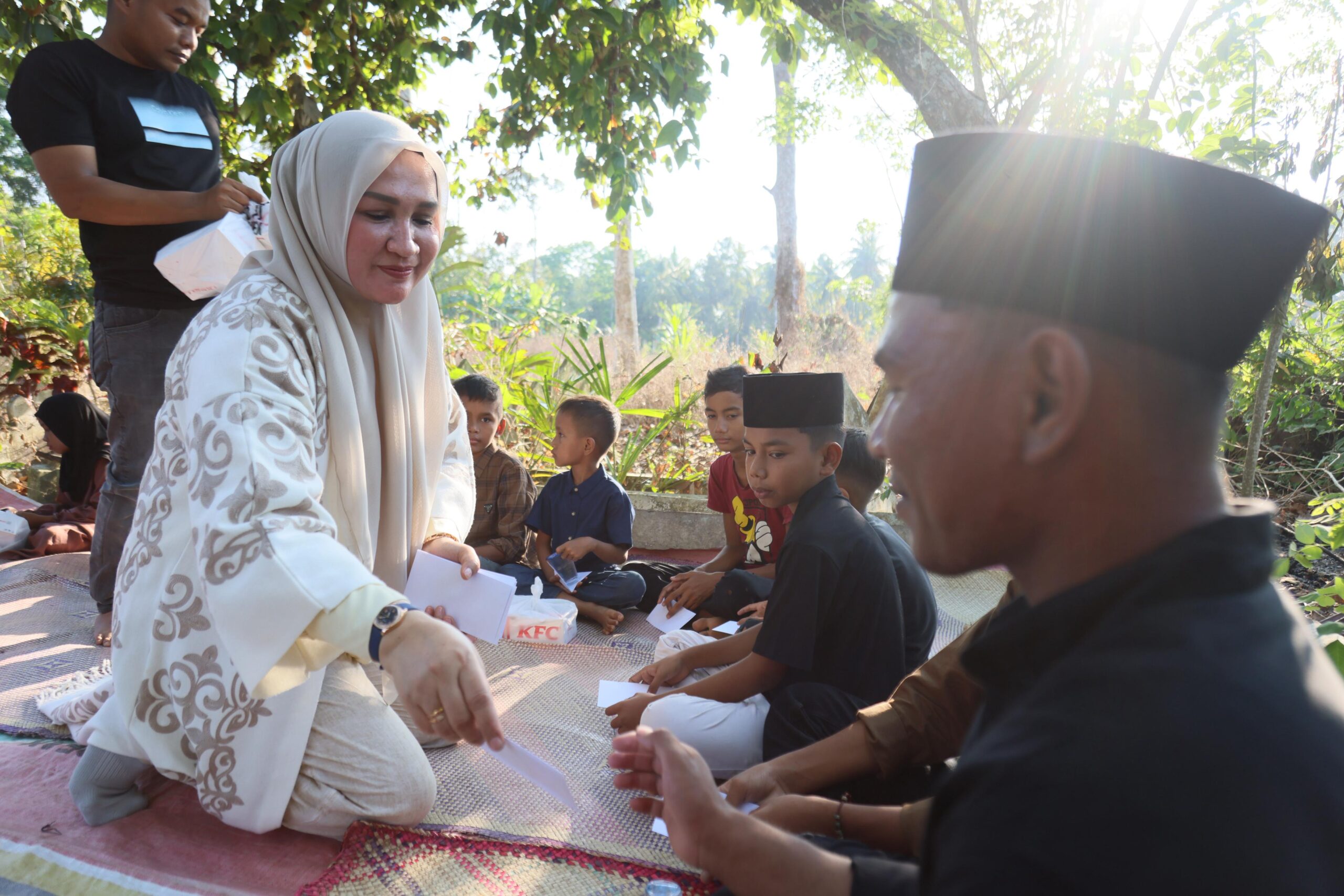 “Alhamdulillah, hari ini bisa berkumpul bersama anak yatim di Gampong Mane Kawan. Saya atas nama keluarga besar mengaturkan terima kasih kepada ananda semua atas kesediaannya menghadiri undangan kami dan mendo’akan keluarga besar di pemakaman ini,” ucap Kak Na.