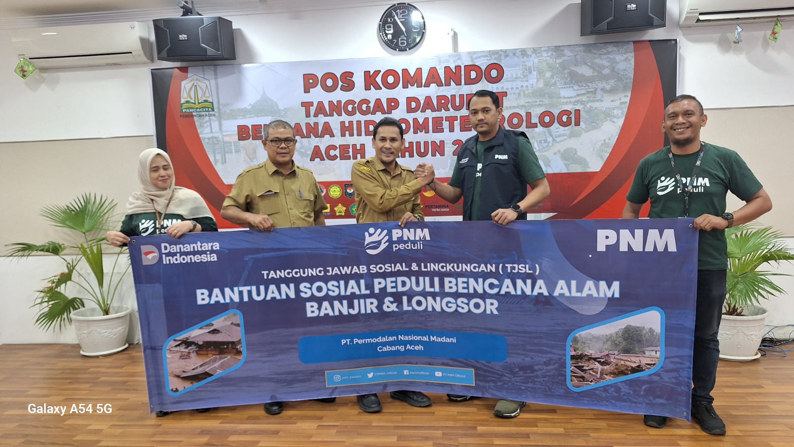 Bantuan tersebut diserahkan langsung Pemimpin Cabang PNM Aceh, Agung Utomo di Pos Komando (Posko) Penanganan Darurat Bencana Hidrometeorologi, Kantor Gubernur Aceh yang diterima Asisten II Setda Aceh, Zulkifli didampingi Plt Kalaksa BPBA Aceh Fadmi.