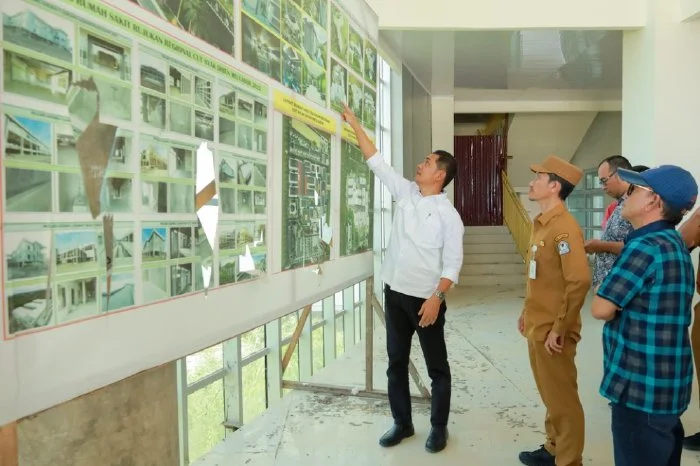 Meulaboh – Bupati Aceh Barat Tarmizi SP, MM mendampingi Sekretaris Daerah (Sekda) Aceh Muhammad Nasir, S.IP., MPA meninjau Gedung Rumah Sakit Regional Meulaboh di Desa Seuneubok, Kecamatan Johan Pahlawan pada Senin 9 Maret 2026.