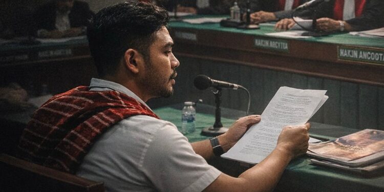 MEDAN, KUTARAJAPOST.COM – Terdakwa perkara dugaan korupsi proyek video profil desa di Kabupaten Karo, Amsal Christy Sitepu, menyampaikan nota pembelaan (pledoi) pribadinya dalam persidangan di Ruang Cakra 5, Pengadilan Negeri Medan, Rabu (4/3/2026).